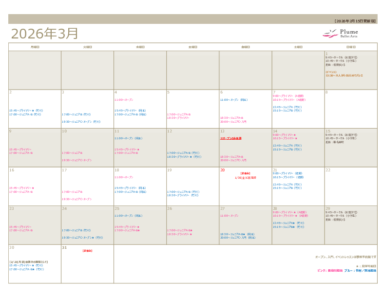 『Plume Ballet Arts(プリュムバレエアーツ)』です